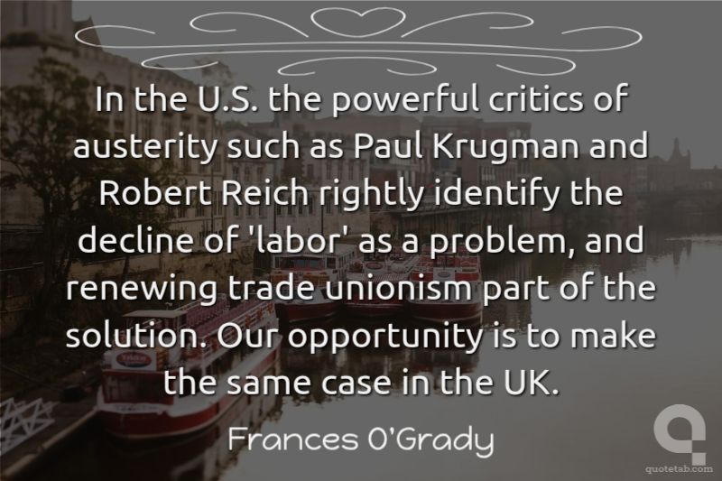 In the U.S. the powerful critics of austerity such as Paul Krugman and Robert Reich rightly identify the decline of 'labor' as a problem, and renewing trade unionism part of the solution. Our opportunity is to make the same case in the UK.