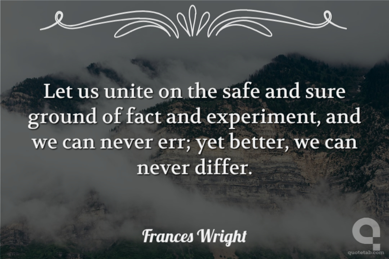 Let us unite on the safe and sure ground of fact and experiment, and we can never err; yet better, we can never differ.