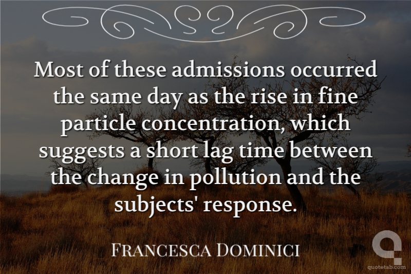 Most of these admissions occurred the same day as the rise in fine particle concentration, which suggests a short lag time between the change in pollution and the subjects' response.