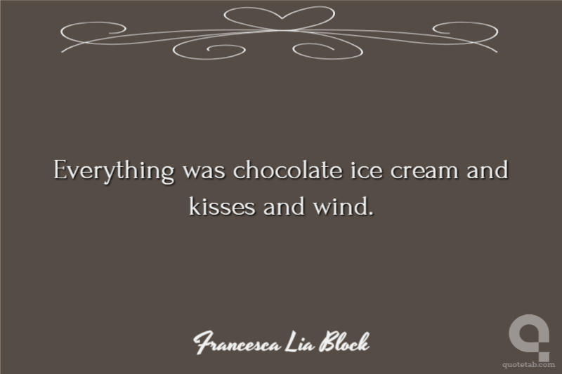 Everything was chocolate ice cream and kisses and wind.