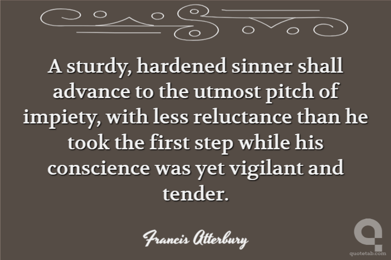 A sturdy, hardened sinner shall advance to the utmost pitch of impiety, with less reluctance than he took the first step while his conscience was yet vigilant and tender.