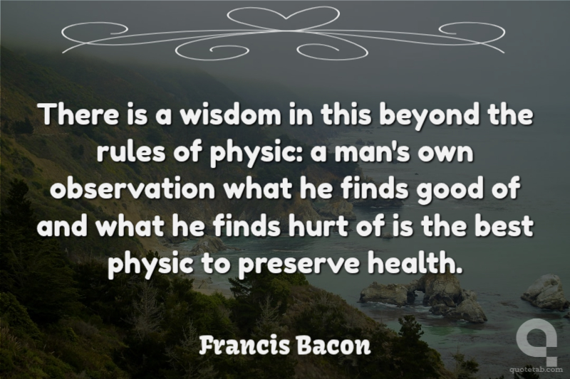 There is a wisdom in this beyond the rules of physic: a man's own observation what he finds good of and what he finds hurt of is the best physic to preserve health.
