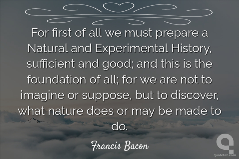 For first of all we must prepare a Natural and Experimental History, sufficient and good; and this is the foundation of all; for we are not to imagine or suppose, but to discover, what nature does or may be made to do.