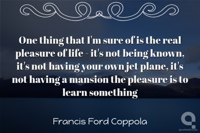 One thing that I'm sure of is the real pleasure of life - it's not being known, it's not having your own jet plane, it's not having a mansion the pleasure is to learn something