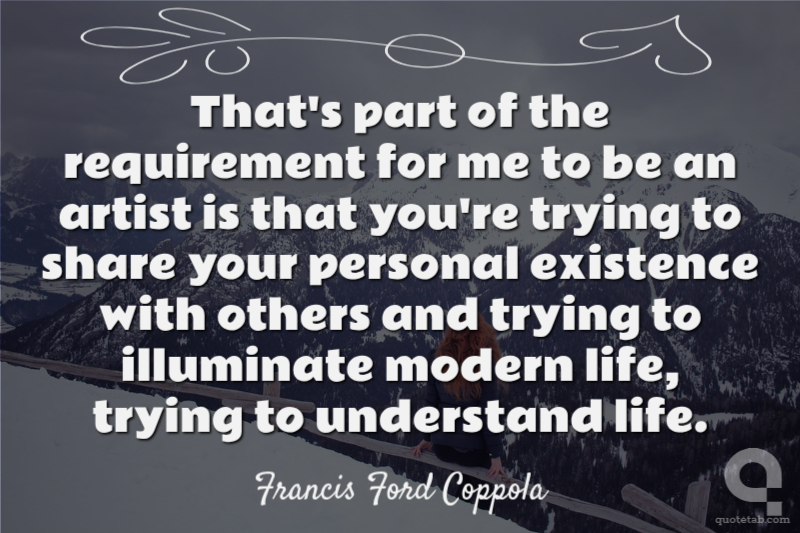 That's part of the requirement for me to be an artist is that you're trying to share your personal existence with others and trying to illuminate modern life, trying to understand life.
