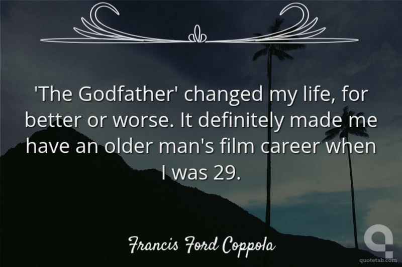 'The Godfather' changed my life, for better or worse. It definitely made me have an older man's film career when I was 29.