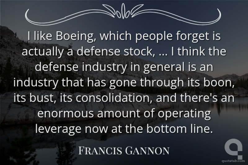 I like Boeing, which people forget is actually a defense stock, ... I think the defense industry in general is an industry that has gone through its boon, its bust, its consolidation, and there's an enormous amount of operating leverage now at the bottom line.