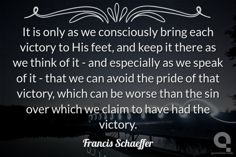 It is only as we consciously bring each victory to His feet, and keep it there as we think of it - and especially as we speak of it - that we can avoid the pride of that victory, which can be worse than the sin over which we claim to have had the victory.