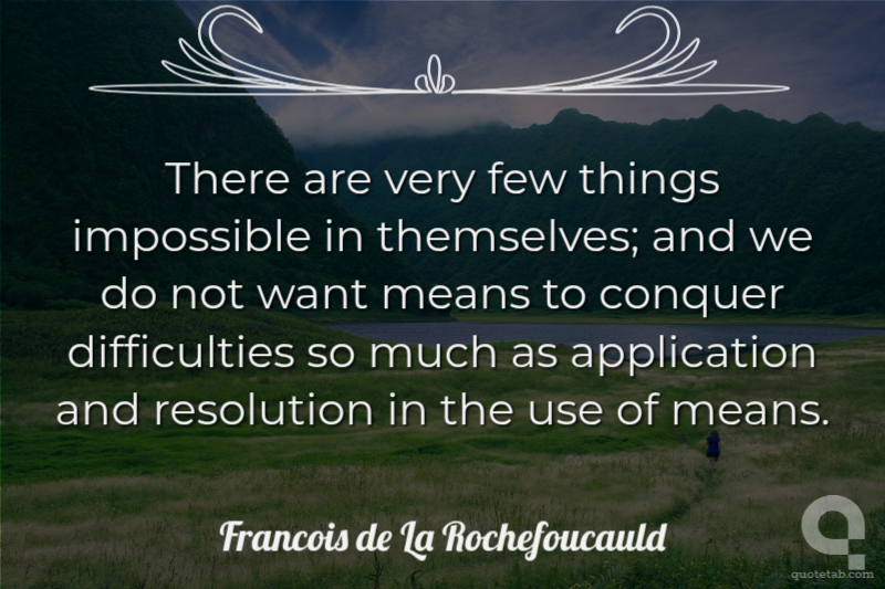 There are very few things impossible in themselves; and we do not want means to conquer difficulties so much as application and resolution in the use of means.