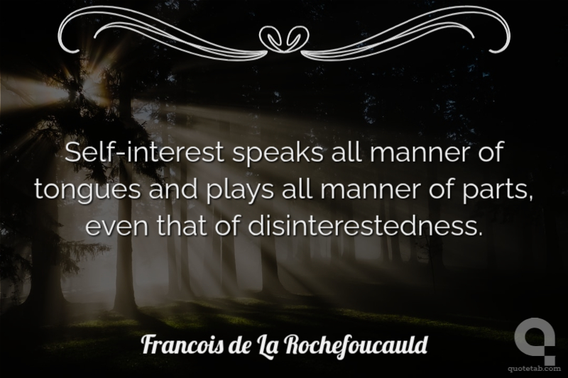 Self-interest speaks all manner of tongues and plays all manner of parts, even that of disinterestedness.
