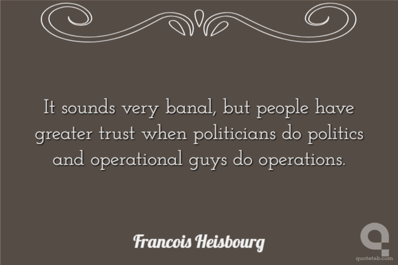 It sounds very banal, but people have greater trust when politicians do politics and operational guys do operations.