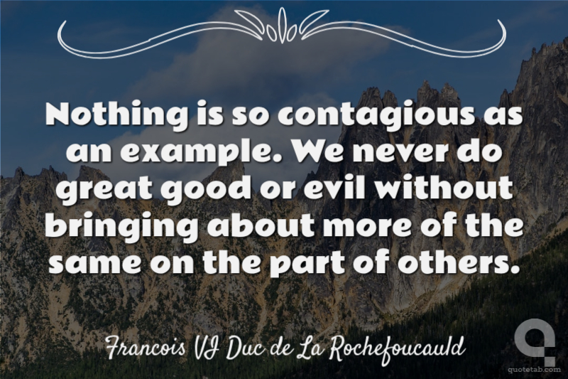Nothing is so contagious as an example. We never do great good or evil without bringing about more of the same on the part of others.