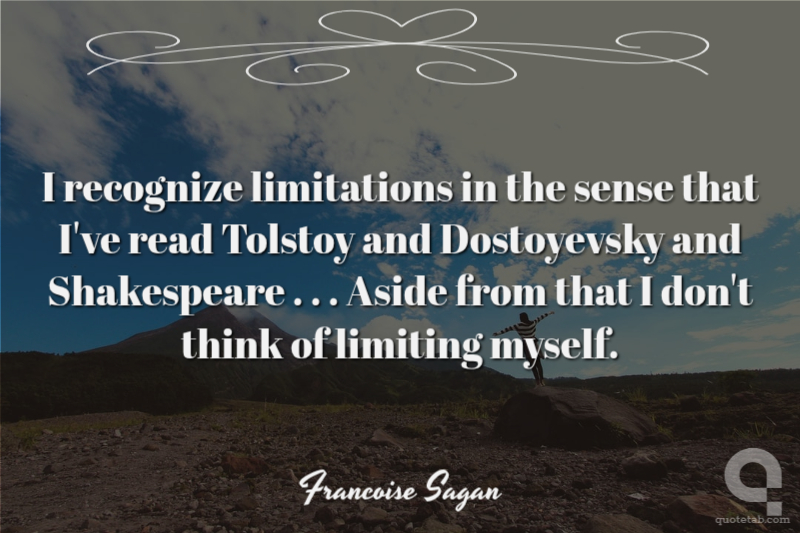 I recognize limitations in the sense that I've read Tolstoy and Dostoyevsky and Shakespeare . . . Aside from that I don't think of limiting myself.