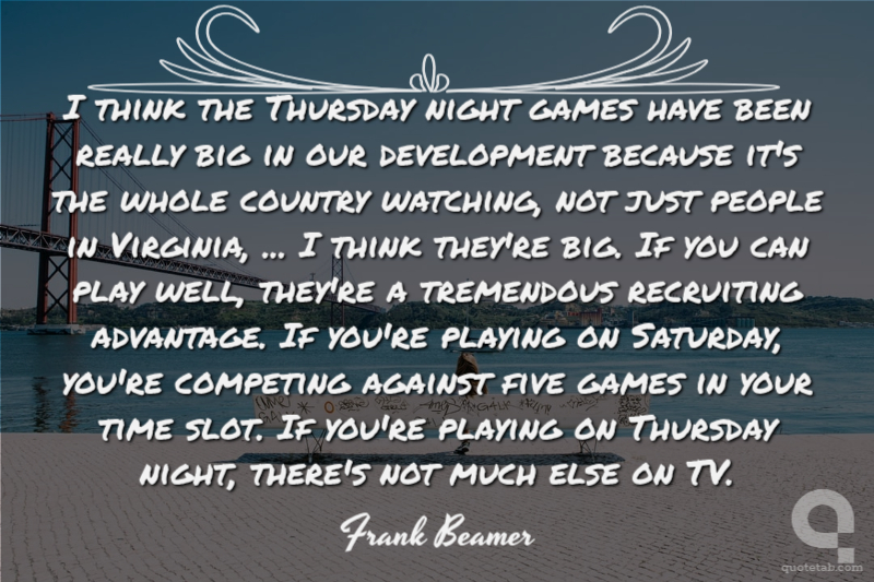 I think the Thursday night games have been really big in our development because it's the whole country watching, not just people in Virginia, ... I think they're big. If you can play well, they're a tremendous recruiting advantage. If you're playing on Saturday, you're competing against five games in your time slot. If you're playing on Thursday night, there's not much else on TV.