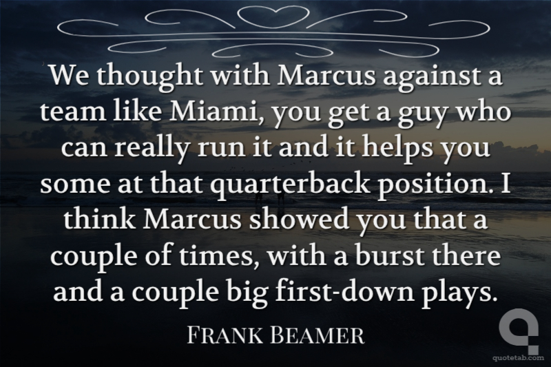 We thought with Marcus against a team like Miami, you get a guy who can really run it and it helps you some at that quarterback position. I think Marcus showed you that a couple of times, with a burst there and a couple big first-down plays.