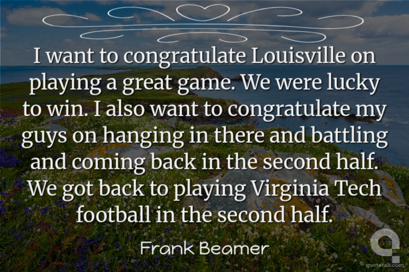 I want to congratulate Louisville on playing a great game. We were lucky to win. I also want to congratulate my guys on hanging in there and battling and coming back in the second half. We got back to playing Virginia Tech football in the second half.