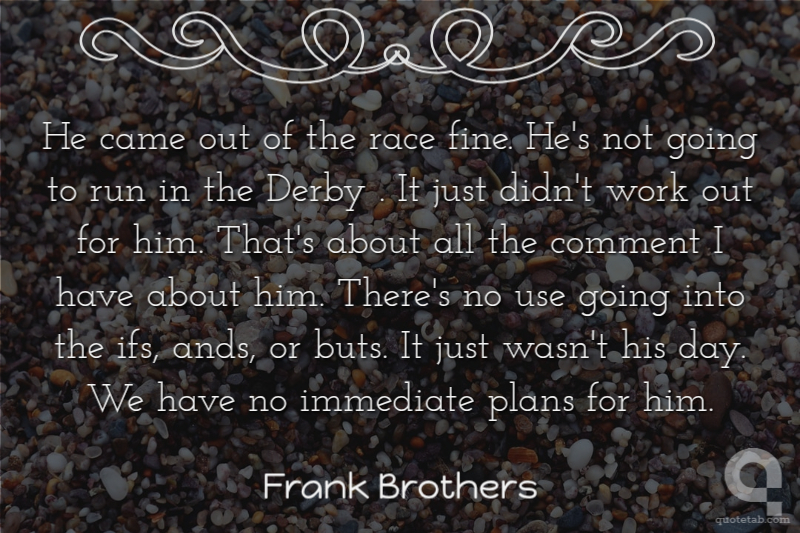 He came out of the race fine. He's not going to run in the Derby . It just didn't work out for him. That's about all the comment I have about him. There's no use going into the ifs, ands, or buts. It just wasn't his day. We have no immediate plans for him.