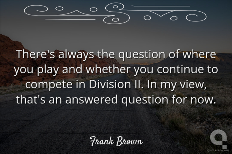 There's always the question of where you play and whether you continue to compete in Division II. In my view, that's an answered question for now.