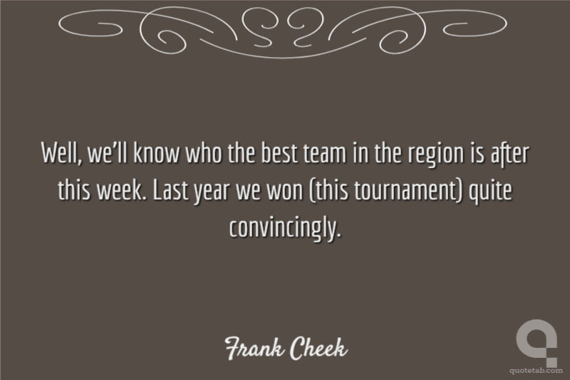 Well, we'll know who the best team in the region is after this week. Last year we won (this tournament) quite convincingly.