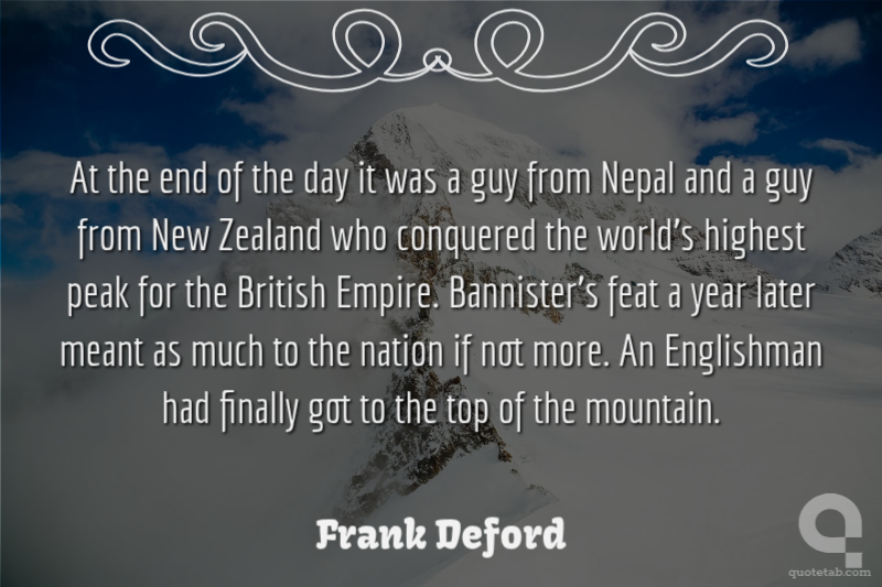At the end of the day it was a guy from Nepal and a guy from New Zealand who conquered the world's highest peak for the British Empire. Bannister's feat a year later meant as much to the nation if not more. An Englishman had finally got to the top of the mountain.