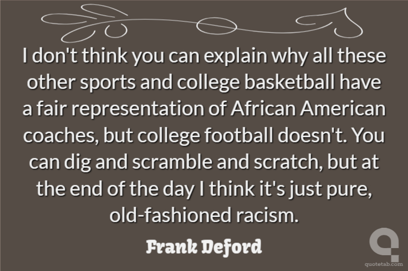I don't think you can explain why all these other sports and college basketball have a fair representation of African American coaches, but college football doesn't. You can dig and scramble and scratch, but at the end of the day I think it's just pure, old-fashioned racism.