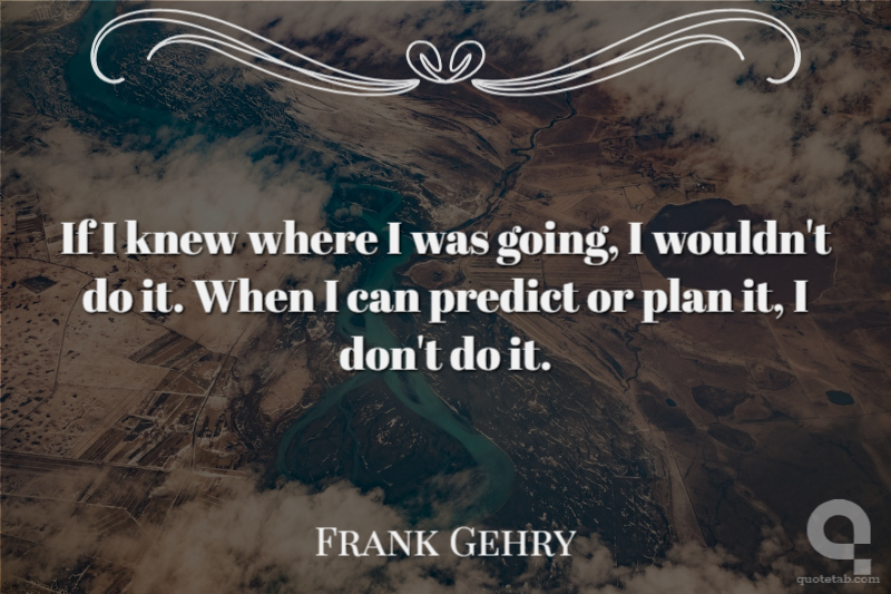 If I knew where I was going, I wouldn't do it. When I can predict or plan it, I don't do it.