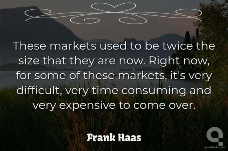 These markets used to be twice the size that they are now. Right now, for some of these markets, it's very difficult, very time consuming and very expensive to come over.