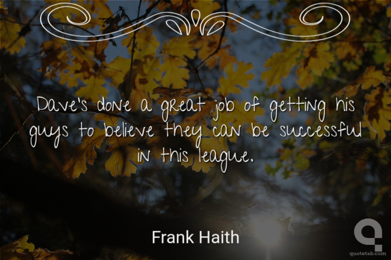 Dave's done a great job of getting his guys to believe they can be successful in this league.