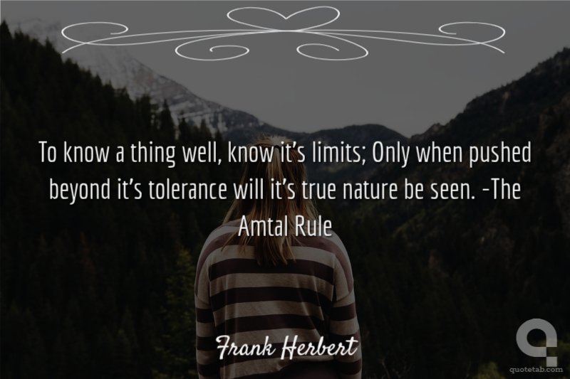 To know a thing well, know it's limits; Only when pushed beyond it's tolerance will it's true nature be seen. -The Amtal Rule