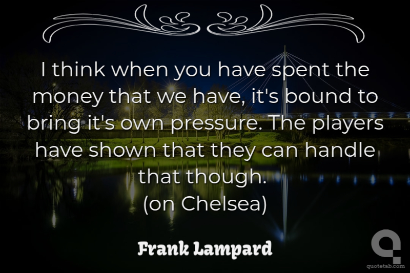 I think when you have spent the money that we have, it's bound to bring it's own pressure. The players have shown that they can handle that though. (on Chelsea)