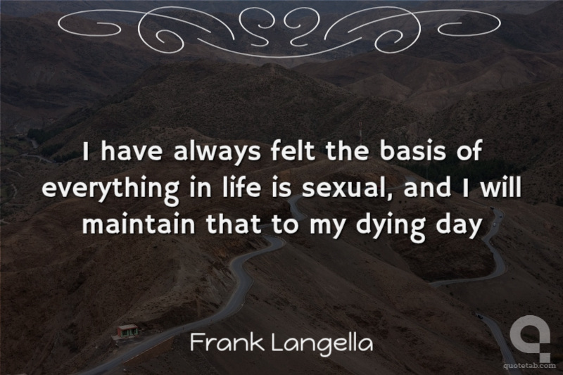 I have always felt the basis of everything in life is sexual, and I will maintain that to my dying day