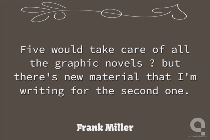 Five would take care of all the graphic novels ? but there's new material that I'm writing for the second one.