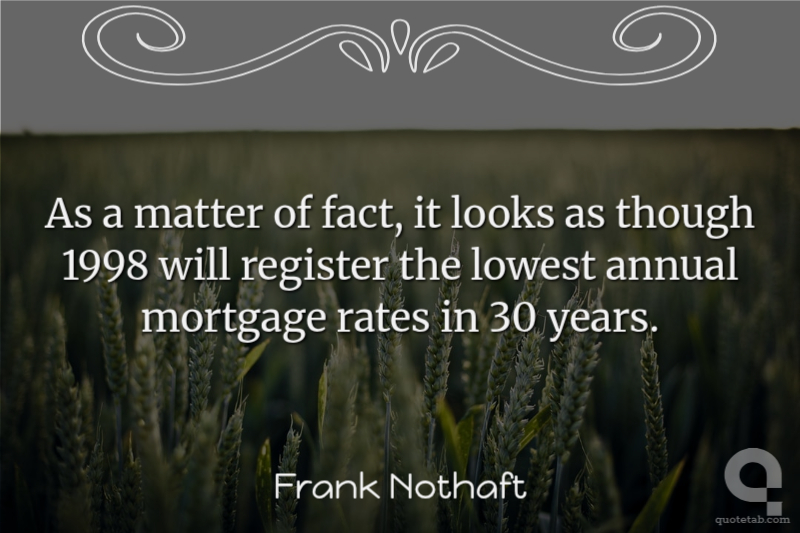 As a matter of fact, it looks as though 1998 will register the lowest annual mortgage rates in 30 years.