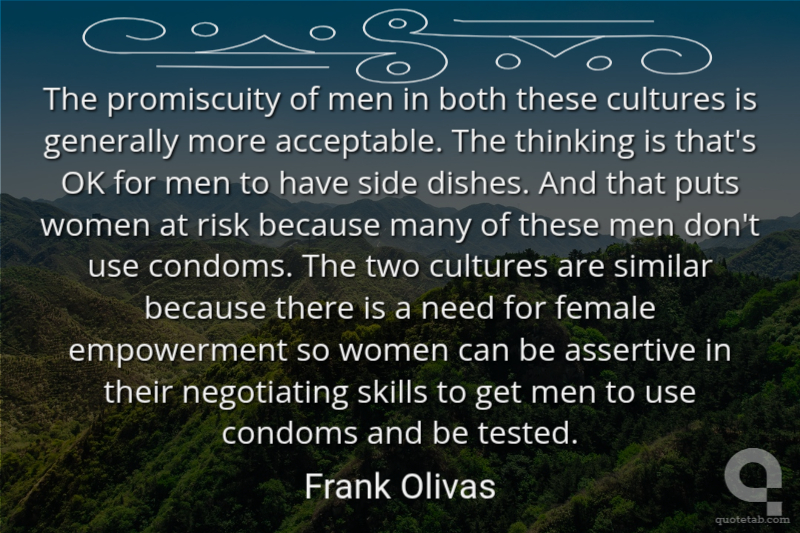 The promiscuity of men in both these cultures is generally more acceptable. The thinking is that's OK for men to have side dishes. And that puts women at risk because many of these men don't use condoms. The two cultures are similar because there is a need for female empowerment so women can be assertive in their negotiating skills to get men to use condoms and be tested.