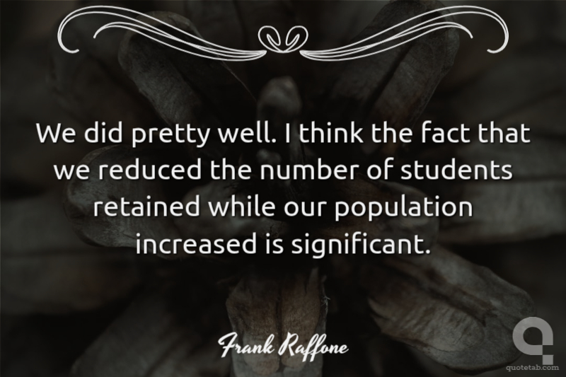 We did pretty well. I think the fact that we reduced the number of students retained while our population increased is significant.