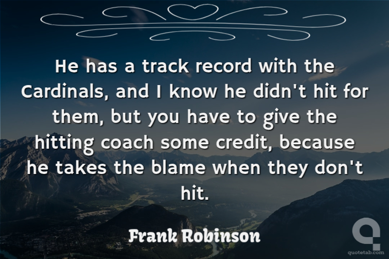 He has a track record with the Cardinals, and I know he didn't hit for them, but you have to give the hitting coach some credit, because he takes the blame when they don't hit.