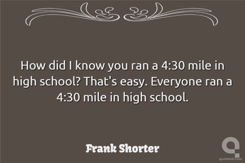 How did I know you ran a 4:30 mile in high school? That's easy. Everyone ran a 4:30 mile in high school.