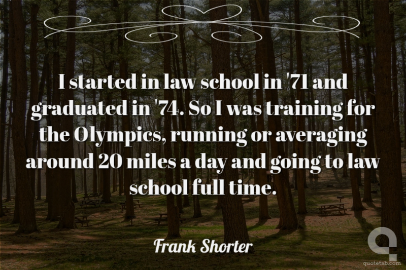 I started in law school in '71 and graduated in '74. So I was training for the Olympics, running or averaging around 20 miles a day and going to law school full time.