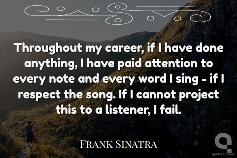 Throughout my career, if I have done anything, I have paid attention to every note and every word I sing - if I respect the song. If I cannot project this to a listener, I fail.