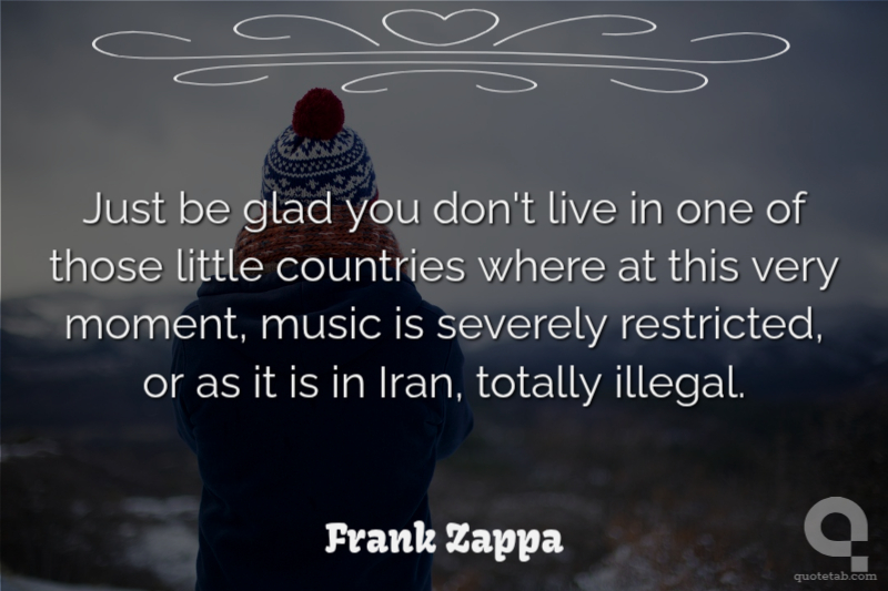 Just be glad you don't live in one of those little countries where at this very moment, music is severely restricted, or as it is in Iran, totally illegal.