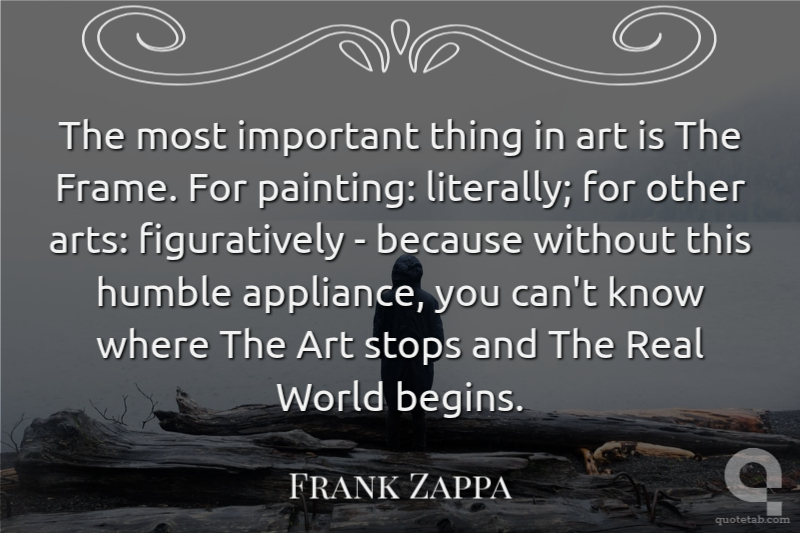 The most important thing in art is The Frame. For painting: literally; for other arts: figuratively - because without this humble appliance, you can't know where The Art stops and The Real World begins.