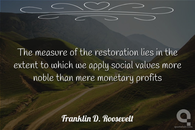 The measure of the restoration lies in the extent to which we apply social values more noble than mere monetary profits