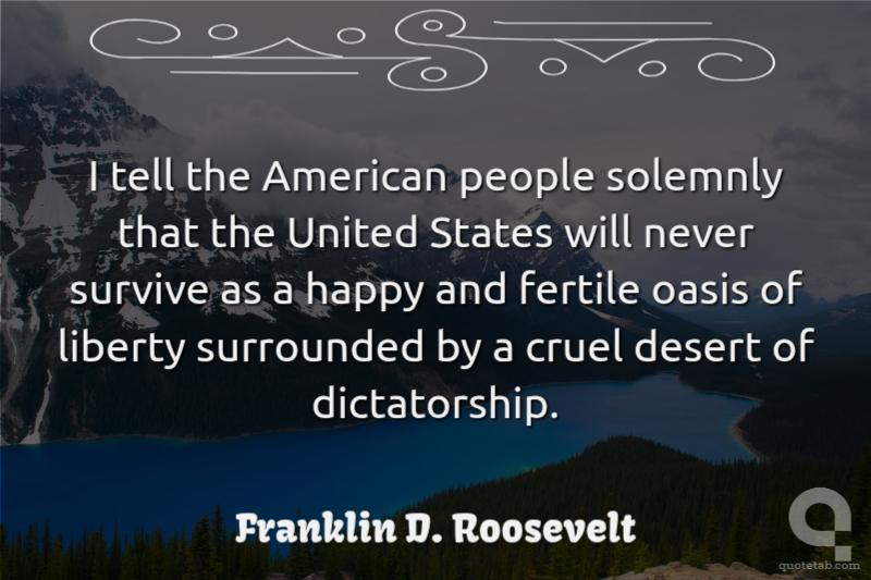 I tell the American people solemnly that the United States will never survive as a happy and fertile oasis of liberty surrounded by a cruel desert of dictatorship.