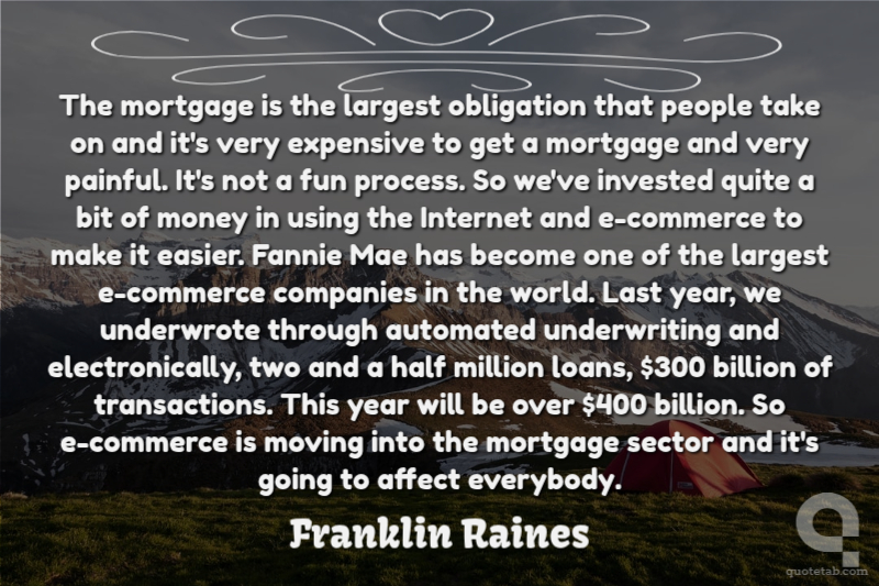 The mortgage is the largest obligation that people take on and it's very expensive to get a mortgage and very painful. It's not a fun process. So we've invested quite a bit of money in using the Internet and e-commerce to make it easier. Fannie Mae has become one of the largest e-commerce companies in the world. Last year, we underwrote through automated underwriting and electronically, two and a half million loans, $300 billion of transactions. This year will be over $400 billion. So e-commerce is moving into the mortgage sector and it's going to affect everybody.