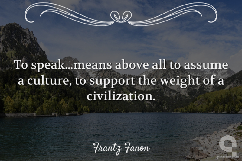 To speak...means above all to assume a culture, to support the weight of a civilization.