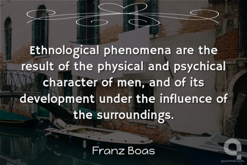 Ethnological phenomena are the result of the physical and psychical character of men, and of its development under the influence of the surroundings.