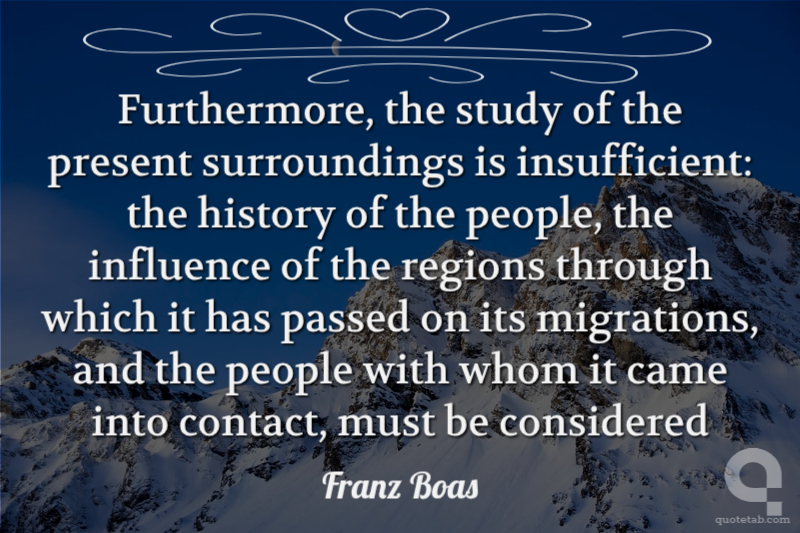 Furthermore, the study of the present surroundings is insufficient: the history of the people, the influence of the regions through which it has passed on its migrations, and the people with whom it came into contact, must be considered