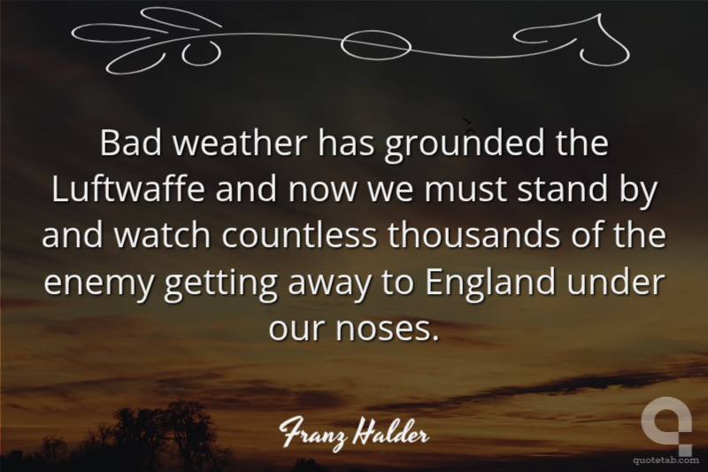 Bad weather has grounded the Luftwaffe and now we must stand by and watch countless thousands of the enemy getting away to England under our noses.