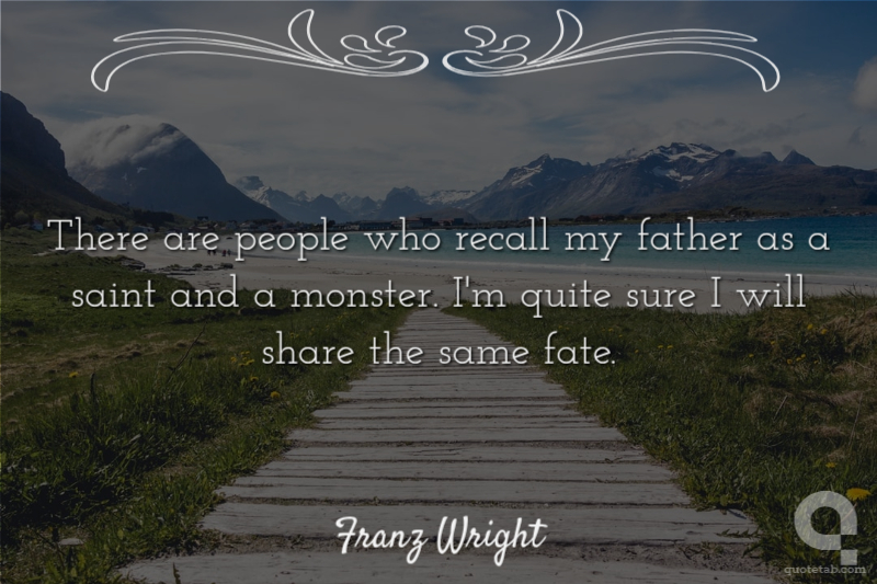 There are people who recall my father as a saint and a monster. I'm quite sure I will share the same fate.