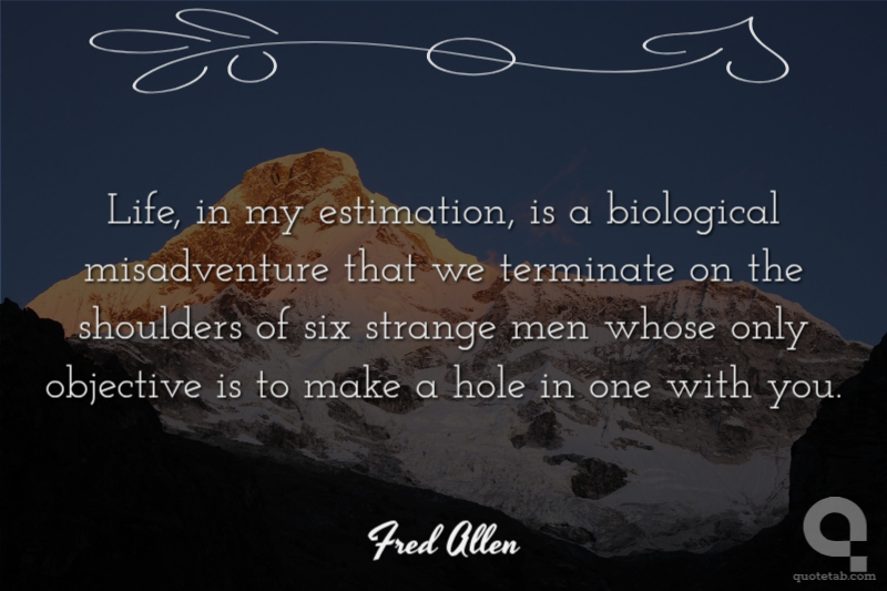 Life, in my estimation, is a biological misadventure that we terminate on the shoulders of six strange men whose only objective is to make a hole in one with you.